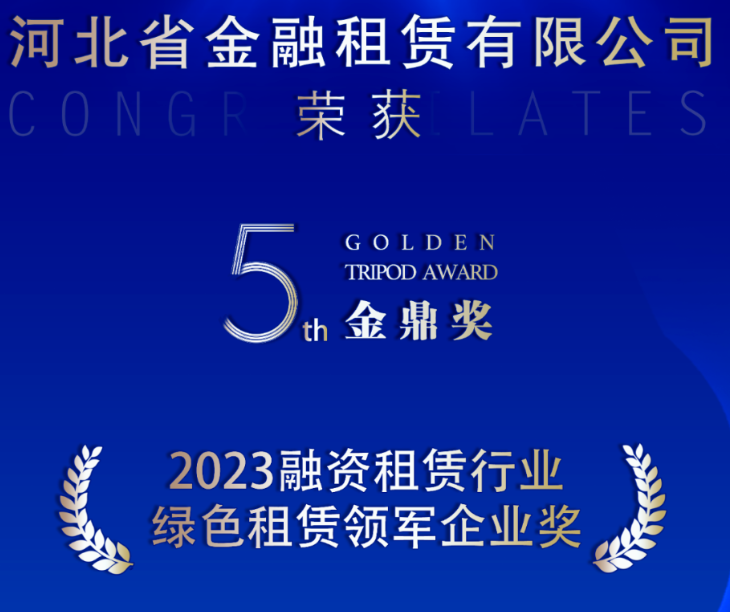 榮譽 | 河北金租榮獲“金鼎獎”2023年度綠色租賃領軍企業獎